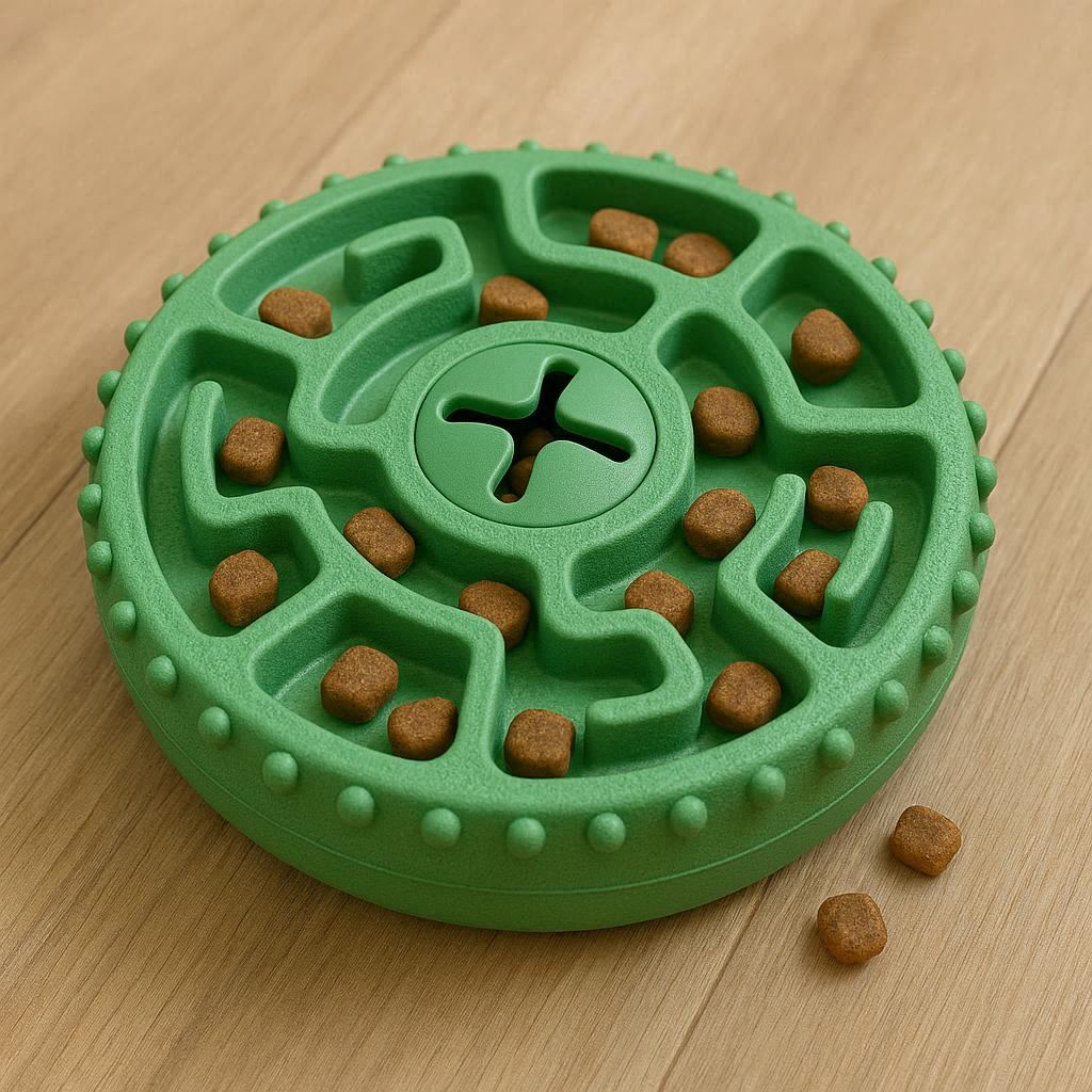 A rubber puzzle toy that dispenses treats as your dog plays. Promotes mental stimulation and slows down eating. Non-slip base and easy-to-clean design make it perfect for smart dogs.